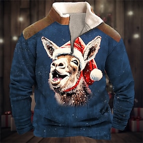בגדי ריקוד גברים גראפי חמור חג מולד שמח סווטשירטים טרנינג טרנינג סווטשירט עם רוכסן שרוול ארוך טרֵנִינג רבע מיקוד יומי בסיסי יום יומי הדפסת תלת מימד חגים חופשה ליציאה דפוס פליז סתיו חורף