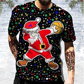 חג המולד גברים סנטה קלאוס חולצות טריקו תלת מימד סנטה קלאוס הדפסים גרפיים צווארון שחור לבן רויאל כחול כתום הדפס תלת מימד חיצוני ביגוד הדפס שרוולים קצרים מעצב הלבשה קז'ואל שמח ובהיר