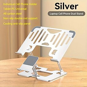 טלפון נייד מתכוונן מפלדת פחמן 2 ב-1 &מעמד למחשב נייד עם מחזיק טאבלט - עיצוב מתקפל מתכוונן גובה 180 מתאים למחשבים, טאבלטים וסמארטפונים