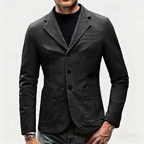 בגדי ריקוד גברים בלייזר עֵסֶק מסיבת קוקטייל מסיבת החתונה אופנתי יום יומי אביב סתיו 100% כותנה אחיד כיס כפתורים נוח חזה יחיד בְּלֵיזֶר שחור חאקי ירוק צבאי