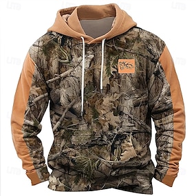 בגדי ריקוד גברים להסוות צבי קפוצ'ון טרנינג קאובוי יום יומי שרוול ארוך עם קפוצ'ון ספורט חוץ לבוש רחוב שחור חום כיס הדפסת תלת מימד סתיו חורף מְעַצֵב