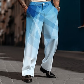 בגדי ריקוד גברים גיאומטרי מופשט צבע מעבר צבע חליפות מכנסיים מכנסיים חליפה מותן בינוני יום יומי לבוש ליום חגים מכנסי שמלה שטוחים בגזרה נינוחה עם חזית וכיסים צדדיים אביב סתיו הדפסת תלת מימד