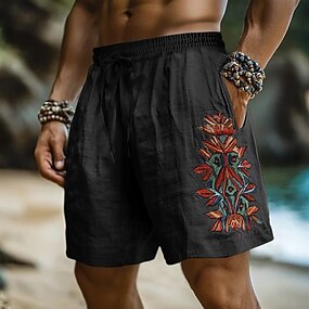 בגדי ריקוד גברים שורטים מכנסי פשתן מכנס קיץ קצר מכנסי חוף שרוך אלסטית מותניים קומפורט נושם באורך הברך בָּחוּץ חגים ביגוד חוף חופשה סגנון אתני שחור כחול סקיי