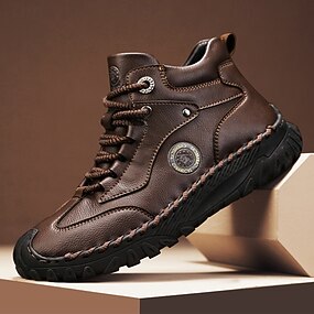 נעלי הליכה לגברים בצבע חום, דמוי עור אמיתי עם סוליה נגד החלקה - נעלי טיולים קז'ואל לטיולי הרפתקאות