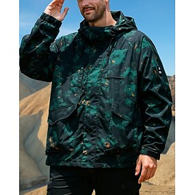 בגדי ריקוד גברים בולם רוח מעיל ג'קט לטיולי הליכה חיצוני עמיד למים עמיד בגדי טיולים אביב סתיו צמרות מחנאות / צעידות / טיולי מערות ריצה להסוות ירוק