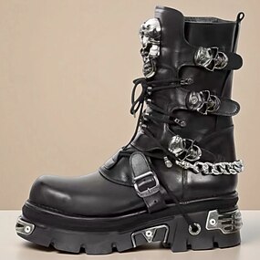 מגפי קרב גותיים שחורים לגברים עם אבזמי גולגולת - מגפי קרסול בסגנון פאנק עם שרוכים לרכיבה על אופנוע ולייל כל הקדושים