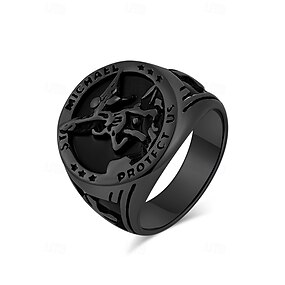 רְחוֹב. טבעת מייקל protect us לגברים - טבעת חותם דתי מנירוסטה, תכשיטי וינטג' קתוליים לאמונה, הגנה ולבוש יומיומי