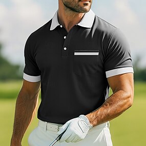 בגדי ריקוד גברים חולצת גולף חולצות פולו פיקה עבודה קזו'אל דש צווארון פולו מצולע שרוולים קצרים בסיסי מודרני קולור בלוק כיס קיץ אביב רגיל שחור לבן כחול בהיר כחול כהה חולצת גולף