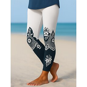 בגדי ריקוד נשים מכנסיים חותלות טייץ נעים סגנון רחוב יום יומי באורך מלא מותניים גבוהים פרחוני פרפר אלסטית מותניים דפוס נשימה נוח סטרצ'י (נמתח) חופשה רחוב לבוש יומיומי שחור לבן כחול רויאל כחול
