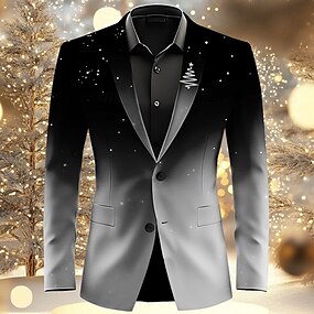 חג המולד בגדי ריקוד גברים Ombre כוכב מעיל ז'קט בלייזר נושם נוח אומנותי יום יומי בגדי ערב למסיבה יומי ערב השנה החדשה כפתורים הדפסת תלת מימד כיס מרובה סתיו חורף צווארון מתקפל שרוול ארוך שחור אודם פול