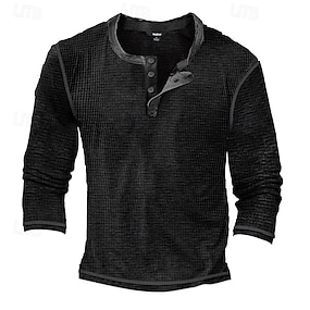בגדי ריקוד גברים חולצת הנלי וופל טי שירטס חולצה ארוכת שרוולים אחיד הנלי בָּחוּץ קזו'אל שרוול ארוך לַחְצָן ביגוד אופנתי מעצב נוח