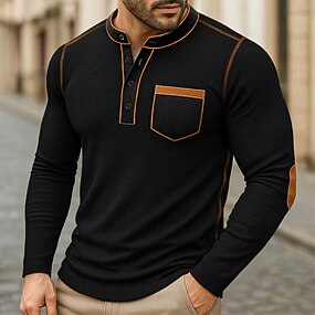 בגדי ריקוד גברים חולצה קצרה חולצת הנלי וופל חולצת הנלי טופ טי חולצה ארוכת שרוולים קולור בלוק הנלי רחוב חופשה שרוול ארוך טלאים ביגוד אופנתי מעצב בסיסי