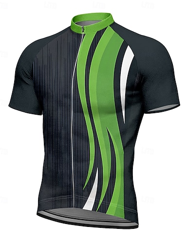 בגדי ריקוד גברים חולצת ג'רסי לרכיבה גראפי גיאומטרי מכתב ומספר שרוולים קצרים אופנייים ג'רזי צמרות עם 3 כיסים אחוריים עמידות UV ייבוש מהיר רוכסן קדמי רצועות מחזירי אור ספורט ירוק ביגוד