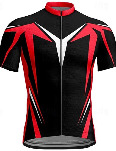 בגדי ריקוד גברים חולצת ג'רסי לרכיבה גראפי גיאומטרי שרוולים קצרים אופנייים ג'רזי צמרות עם 3 כיסים אחוריים עמידות UV ייבוש מהיר רוכסן קדמי רצועות מחזירי אור ספורט אדום ביגוד