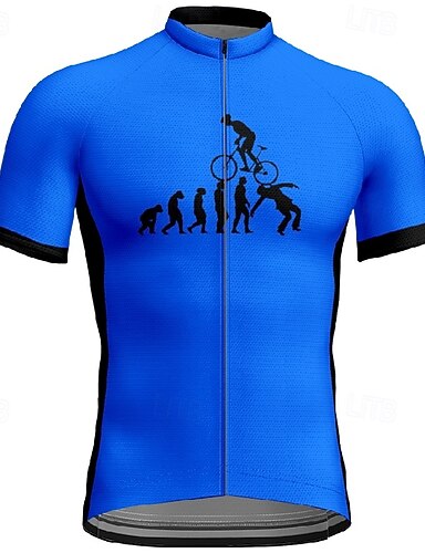 בגדי ריקוד גברים חולצת ג'רסי לרכיבה מכתב ומספר שרוולים קצרים אופנייים טי טי ג'רזי עם 3 כיסים אחוריים רכיבת הרים ייבוש מהיר עיצוב אנטומי פתיליות נושם ספורט כחול ביגוד