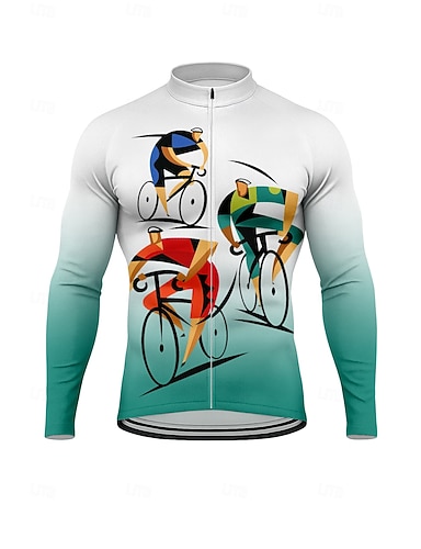 בגדי ריקוד גברים חולצות חולצת ג'רסי לרכיבה גראפי שיפוע שרוול ארוך אופנייים ג'רזי צמרות עם 3 כיסים אחוריים שמש הגנה מפני השמש קרם הגנה ייבוש מהיר ספורט פול ביגוד