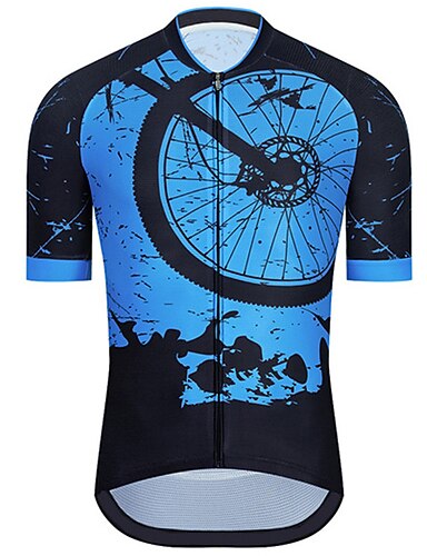 בגדי ריקוד גברים חולצת ג'רסי לרכיבה גרפיטי שרוולים קצרים אופנייים טי טי ג'רזי עם 3 כיסים אחוריים רכיבת הרים ייבוש מהיר עיצוב אנטומי פתיליות נושם ספורט כחול ביגוד