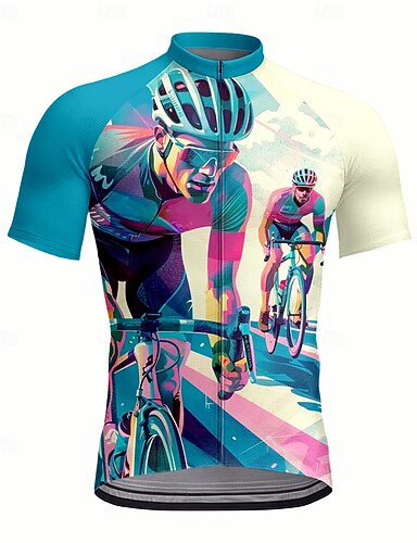 בגדי ריקוד גברים חולצת ג'רסי לרכיבה אנימציה שרוולים קצרים אופנייים טי טי ג'רזי עם 3 כיסים אחוריים רכיבת הרים ייבוש מהיר עיצוב אנטומי פתיליות נושם ספורט ורוד כחול ירוק ביגוד