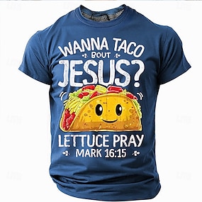 חולצת טי גראפית לגברים מצחיקה נוצרית - 'רוצה לדבר על ישו בוא נעתיר תפילה' עיצוב משחק מילים עם מרק 16:15 עם שרוול קצר