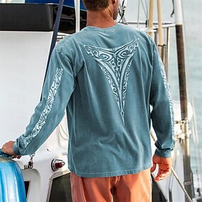 בגדי ריקוד גברים גראפי ויקינג חולצה קצרה שרוול ארוך חולצה קצרה הדפסת תלת מימד צווארון עגול קצר חולצה אופנתי יום יומי סגנון נופש חופשה חגים ליציאה פול תלתן אפור קיץ & אביב ביגוד S M L XL 2XL 3XL