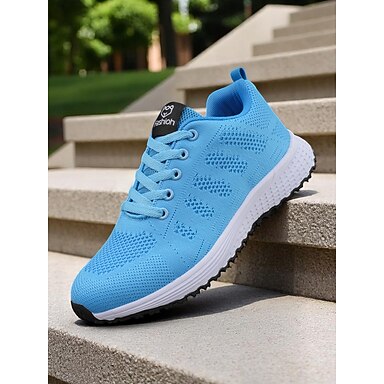 נעלי סניקרס סרוגות תכלת לנשים עם עיצוב נושם להליכה וללבוש קז'ואל
