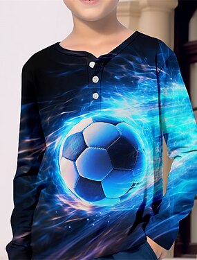 בנים תלת מימד כדורגל חולצת הנלי שרוול ארוך הדפסת תלת מימד סתיו חורף ספורט אופנתי סגנון רחוב ילדים 3-12 שנים צווארון עגול קצר בָּחוּץ קזו'אל יומי רגיל