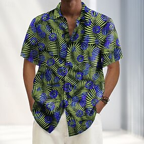 בגדי ריקוד גברים עלה דקל צמחים טרופיים חולצת הוואי חולצה עם כפתורים חולצת אלוהה שרוולים קצרים הוואי חגים ביגוד חוף קיץ אביב צווארון מתקפל הדפסת תלת מימד חולצות צווארון כיס אחד קדמי פול