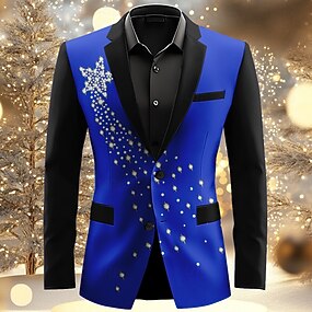 בגדי ריקוד גברים בלייזר מעיל חג מולד קזו'אל פֶסטִיבָל יום יומי קז'ואל סתיו חורף 100% פוליאסטר פתית שלג הדפסת תלת מימד כפתורים שמור על חום הגוף נוח חזה יחיד בְּלֵיזֶר שחור לבן פול כחול סקיי