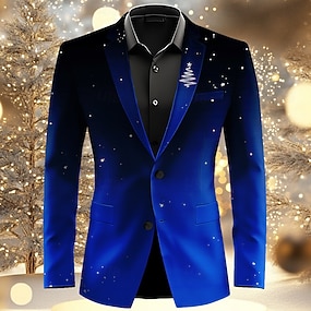 בגדי ריקוד גברים בלייזר מעיל חג מולד קזו'אל פֶסטִיבָל יום יומי קז'ואל סתיו חורף 100% פוליאסטר פתית שלג הדפסת תלת מימד כפתורים שמור על חום הגוף נוח חזה יחיד בְּלֵיזֶר שחור לבן פול כחול סקיי
