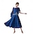 שמלת ריקודים סלוניים לנשים עם שרוולי גלימה משיפון, שמלת תחרות ואלס טנגו לטינית אלגנטית עם מותן מעוטרת - כחול מלכותי