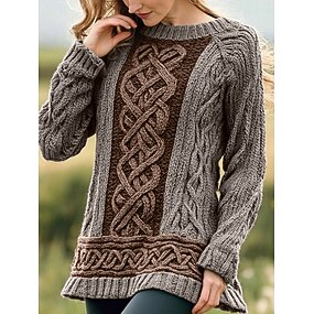 בגדי ריקוד נשים סוודר וינטאג' סגנון אתני יום יומי צבע אחיד כבל צווארון עגול קצר סרוג שרוול ארוך חולצות רגילות לִסְרוֹג בָּחוּץ יומי סוף שבוע פול לבן סתיו חורף