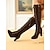 מגפי רכיבה שחורים לנשים בגובה הברך עם הדגשות אבזם חומות - מגפיים חיצוניות אופנתיות ליום יום, עיצוב עקב נמוך נוח לסתיו ולחורף