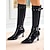 מגפי עקב שמנמנים בגובה הברך שחורים לנשים עם רצועות אבזם - מגפיים אופנתיות מעור מלאכותי ללבוש קז'ואל בסתיו ובחורף