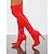 מגפי סטילטו אדומים מעל הברך לנשים - נעלי עקב גבוהות עם אבזם דמוי עור למסיבות לחיי לילה &חגיגות חג המולד