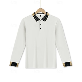 בגדי ריקוד גברים חולצת גולף חולצות פולו גולף עבודה קזו'אל דש שרוול ארוך בסיסי מודרני משובץ קולור בלוק טלאים כפתורים אביב סתיו רגיל משמש שחור לבן יין כחול נייבי כתום חולצת גולף