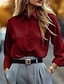 בגדי ריקוד נשים חולצה אלגנטי מִתגַנדֵר סאטן אחיד יומי מסוגנן בסיסי שרוול ארוך צווארון חולצה חולצות רגילות עבודה יומי חגים כפתורים שחור לבן אודם תלתן אביב סתיו