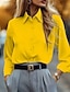 בגדי ריקוד נשים חולצה אחיד פעיל מסוגנן שרוול ארוך צווארון חולצה חולצות רגילות עבודה לבוש רשמי כיס כפתורים צהוב סתיו