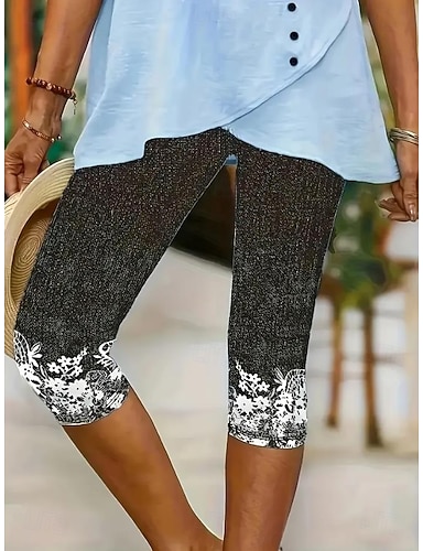 בגדי ריקוד נשים מכנס שלושת רבעי חותלות טייץ נעים סגנון רחוב יום יומי אורך עגל מותניים גבוהים פרחוני אלסטית מותניים נשימה סטרצ'י (נמתח) חופשה רחוב לבוש יומיומי שחור אפור שחור לבן כחול קיץ רגיל