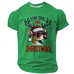 חג המולד בגדי ריקוד גברים כובע חג המולד צבי חולצה קצרה שרוולים קצרים חולצה קצרה הדפסת תלת מימד צווארון עגול קצר חולצה רטרו\וינטאג' יום יומי סגנון רחוב חג מולד ספורט חוץ חגים צהוב פול תלתן אביב קיץ