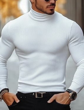 בגדי ריקוד גברים חולצה קצרה חולצת צווארון גולף טי סריג צלעות חולצה ארוכת שרוולים שרוול ארוך צווארון נגלל סתיו חורף אחיד משקל קל קלסי יום יומי מצולע בָּחוּץ קזו'אל ספורט לבן חולצה עליונה לגברים