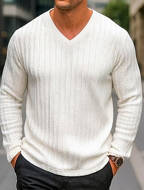 בגדי ריקוד גברים טי סריג עם צווארון V לגברים טי סריג צלעות טופ טי שרוול ארוך צווארון V אביב סתיו כל העונות אחיד סרוג עם טקסטורה מודרני יום יומי נוח בסיסי בית רחוב קזו'אל לבן כחול נייבי כחול רויאל