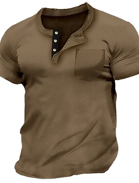 בגדי ריקוד גברים חולצת הנלי טופ טי אחיד הנלי רחוב חופשה שרוול קצר כיס סגנון וינטג' ביגוד אופנתי מעצב בסיסי
