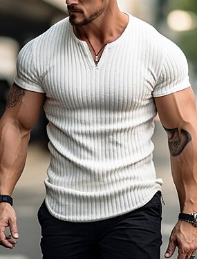 בגדי ריקוד גברים חולצה קצרה טופ סריג צלעות חולצת שרירים טי סריג צלעות שרוול קצר צווארון V קיץ אחיד מעצב בסיסי מודרני עכשווי חופשה רחוב ליציאה שחור לבן אפור חולצה עליונה לגברים