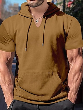 בגדי ריקוד גברים חולצה קצרה טי שירטס חולצה עם שרוולים קצרים טופ טי שרוולים קצרים עם קפוצ'ון אביב קיץ אחיד אופנתי מעצב בסיסי כיס קדמי חופשה רחוב ליציאה שחור לבן אפור כהה חולצה עליונה לגברים