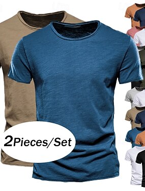 בגדי ריקוד גברים חולצה קצרה טופ טי חולצת טריקו מבמבוק שרוולים קצרים שרוול קצר צווארון עגול קצר צווארון עגול קיץ אחיד אופנתי מעצב בסיסי 2חלקים סגנון קלאסי בסיסי חופשה רחוב קזו'אל