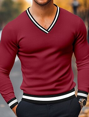 בגדי ריקוד גברים חולצה קצרה טי סרוג שרוול ארוך צווארון V חורף קיץ & אביב צבע אחיד סריגים V-צוואר יום יומי\קז'ואל שחור לבן צהוב חולצה עליונה לגברים