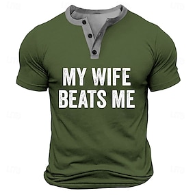 בגדי ריקוד גברים סלנג מצחיק חולצה קצרה חולצת הנלי שרוולים קצרים מעצב רטרו\וינטאג' הנלי רחוב קזו'אל יומי קיץ אביב ירוק צבאי כחול אגם הנלי קולר הנלי חולצת טריקו של הנלי