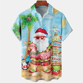 חג המולד לגברים חולצה הוואית של סנטה קלאוס גרפיקה הוואית של סנטה | חיצוני כותנה כחולה | החוף | חולצות אלוהה קלאוס הדפסי סופה תלת מימד בגדי כפתורים עם שרוולים קצרים