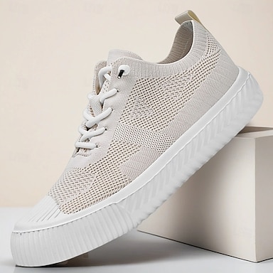 נעלי סניקרס לגברים בז' בז' עם חלק עליון רשת נושם וסוליה מרופדת ללבוש נוח