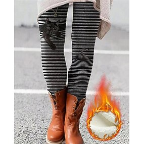 בגדי ריקוד נשים חותלות טייץ נעים אופנתי סגנון רחוב בסיסי באורך מלא מותניים גבוהים גראפי חתול פסים מדפיס פליז שמור על חום הגוף נוח סטרצ'י (נמתח) בָּחוּץ יום יומי\קז'ואל שחור סתיו חורף גזרה צרה